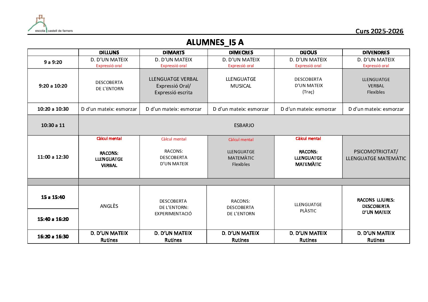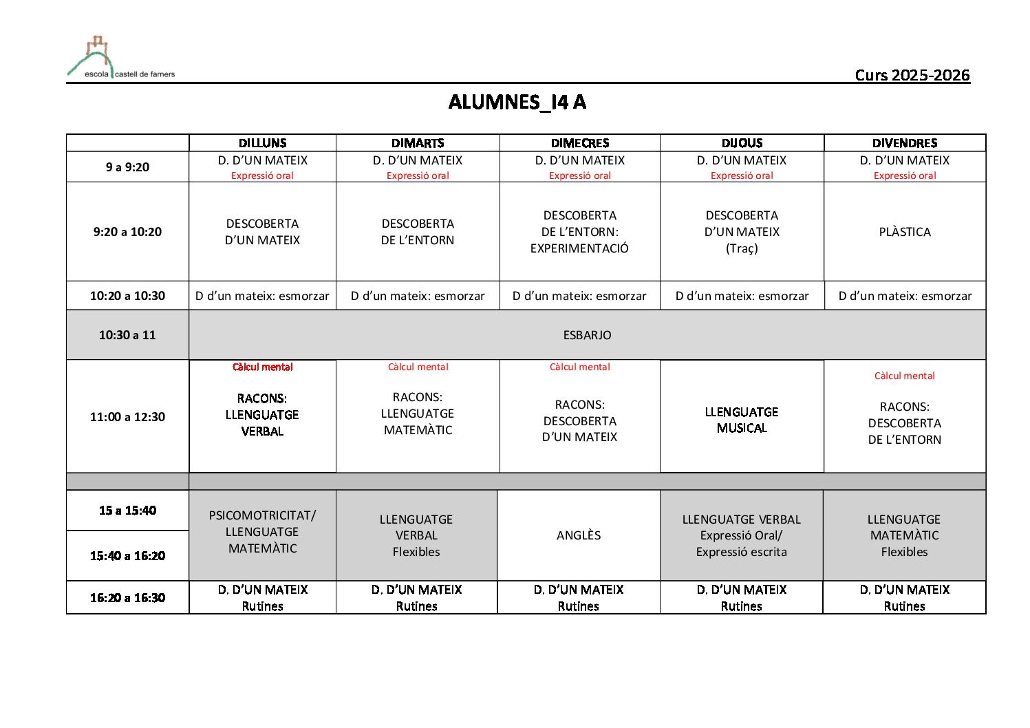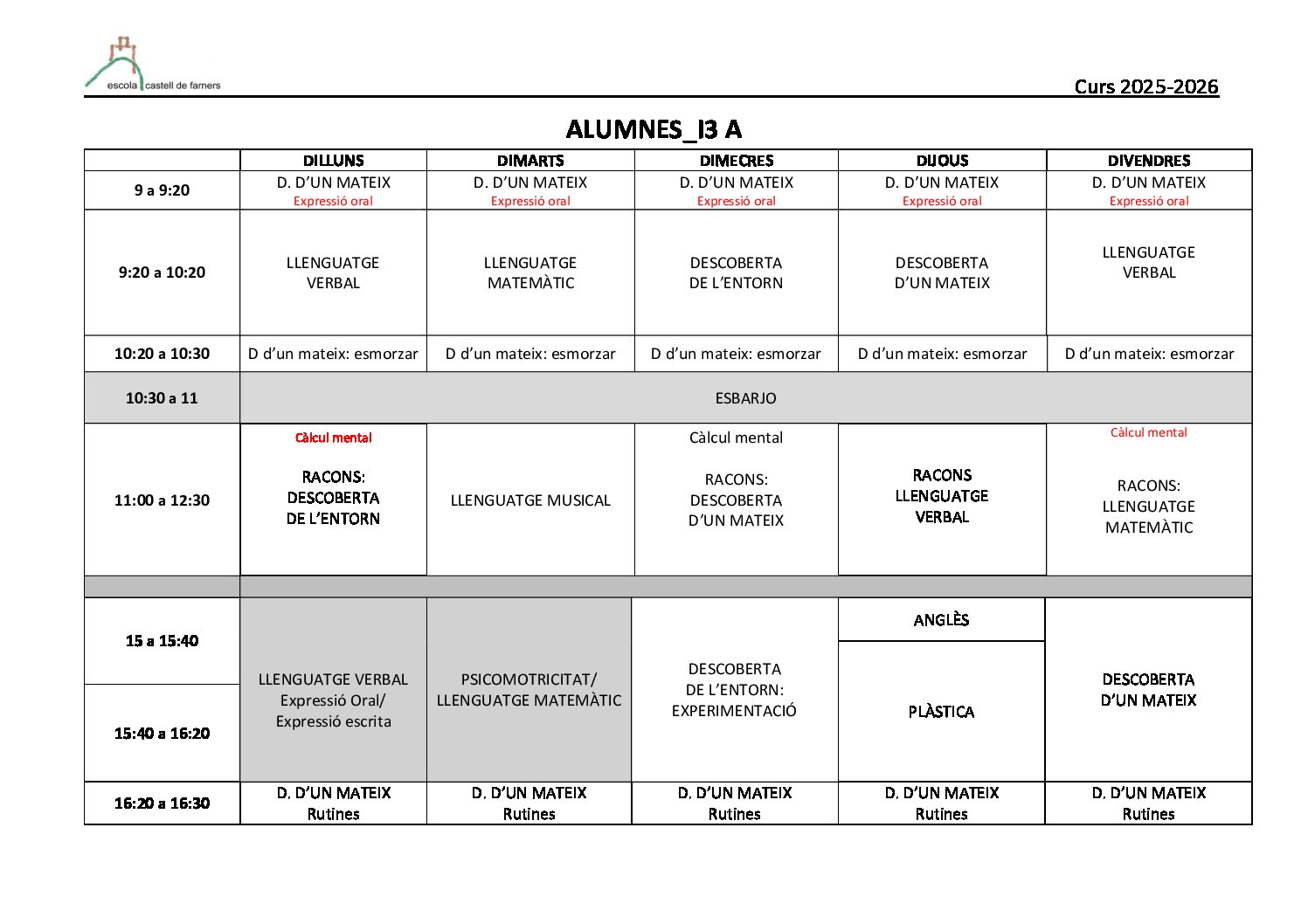 Un procés on l’aprenentatge ha de ser el més acollidor possible. A l’educació infantil treballem des d’un enfocament constructivista. Volem donar el màxim de protagonisme als nens donant-los molta autonomia, amb l’objectiu que així cadascun d’ells vagi ampliant els seus coneixements, seguint la seva evolució madurativa. Els nostres alumnes estan a l’etapa preoperacional (Jean Piaget), on els nens comencen a guanyar la capacitat per posar-se en el lloc dels altres, comencen a actuar i jugar seguint rols ficticis i a utilitzar objectes de caràcter simbòlic.